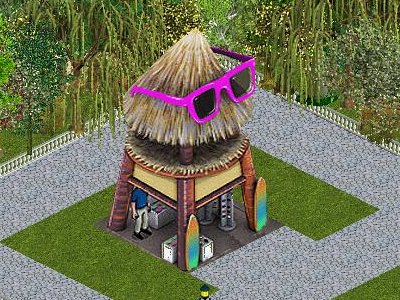 Description: This booth gives the illusion of an open on all sides shop where your guests can buy sunglasses to protect their eyes from the hot rays of the sun during their zoo visit. Pay no attention to the giant on the left of the building he's just a huge mannequin.