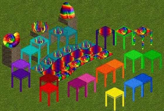 Description: Add some bold colors to your zoo with these items from the Rainbow Collection by SavyKet (Savannahjan and Cricket).