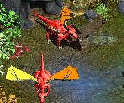 The red dragon is the most frequent member of the dragon family. Often people think that dragons are evil beasts which destroy fields and vilages, though most dragons are peaceful carnivorous lizards. They eat everything, from berries and fish to amphibians, reptiles, birds, rodents, deer and also other carnivores like bears or wolfes. In the winter time they sleep in caves on mountains or behind waterfalls.