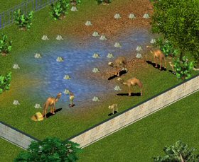 Description: A camel that lived in North America about 1 million years ago. Warning! May lure guests away from other parts of your zoo. Likes grass and savannah, but likes deciduous trees.