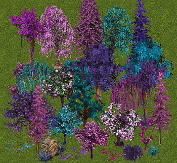 Description : 29 fantasy-themed foliage and rock items to decorate your zoo. Part III contains pinks, fuschias, violets and turquoise.