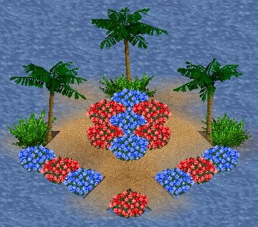 Description: Decorate the patriotic-themed areas of your zoo with these red and blue USA flowers.
