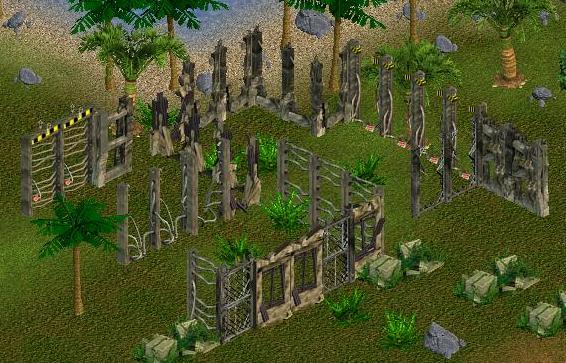 Description: Here are a number of Zoo Tycoon's broken and deteriorated walls and fences, configured to be used as decorative walls and fences. These can be used in a variety of zoo settings, from Halloween and scary settings, to settings of ruins, to neglected zoos, to informal areas of a zoo.
