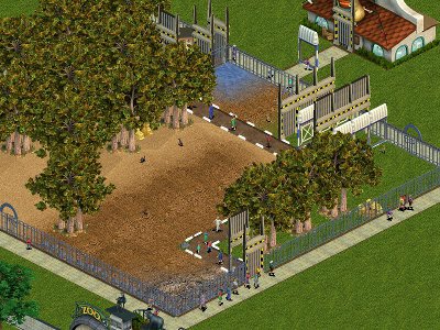 Description : These gates allow having working gates for guests and animals. Although ZT came with exhibit gates, they did not give any decorative gates. There are lots of potential uses for decorative gates. For example, maybe one wants to have a fenced in area, maybe with picnic tables or with a garden, and have a decorative gate that opens as guests enter or leave that area. The attached Decorative Portal Gate and Decorative Reinforced Concrete And Glass Gate are decorative gates. Unfortunately, ZT does not allow gates to be purchased from the Fences purchase menu. So I put the gates in the Scenery purchase menu instead. Their prices are 225, just like the in-game Reinforced Concrete And Glass Fence. There are 2 versions of each of these gates in the purchase menu. One version will open and close as it is being used. The other version is always open. The screenshot is inspired by an actual exhibit at the Auckland Zoo in New Zealand. The exhibit there contains a couple types of wallabies, a type of kangaroo, and a type of peafowl. The guests are in the exhibit with those animals. There is a path that curves through the exhibit that the guests are supposed to stay on. But the animals can cross the path. To enter and leave the exhibit, there is a pair of doors at each end of the path. For each pair of doors, only 1 door can open at a time, in order to prevent the animals from getting through both doors. In the screenshot, I am only using 2 types of wallabies, 1 type on each side of the path. Although it looks like the path is in the exhibit, it is actually between 2 exhibits, using the half white curbs as part of the exhibit fences. So the animals cannot actually cross the path. Since I cannot control when the doors open, it is possible for both doors in a pair of doors to be open at once. The screenshot shows other uses for the decorative gates as well. There is a gate in front of a shelter, although that cannot be seen well because it is behind the trees. There is a gate in front of the cafe and a portal on the path to the cafe. These gates will open as animals or guests go through them. As guests enter the cafe, the gate opens and then closes when the guest is in the building. When the guest comes out of the building, the gate opens and closes again. Similarly, when an animal enters the shelter, its gate opens and then closes when the animal is in the shelter. When the animal comes out of the shelter, its gate opens and closes again. The screenshot shows the cafe portal is open because of the guest going through it. It also shows 1 of the gates open near the front of the exhibit as the guests look like they are entering "the exhibit". A part of the exhibit has 4 rows of decorative gates, just for fun. The animals can go through those gates to get to another part of the exhibit. For the versions of the gates that will open and close, they will open and close as the animals go through them. ZT has unusual behavior concerning these decorative gates. The animals can go through any of the types. But guests can only go through the ones that can open and close. Guests cannot go through the ones that are always open. Staff generally cannot go through any of the types when they are outside the exhibit, but staff can go through them when they are inside an exhibit, or maybe only when there is no other choice. The reason there is both a type that opens and closes and a type that is always open is to get around a problem with ZT. If a fence piece of an exhibit is replaced with the decorative gate, ZT needed to find a fence piece and not a gate piece. If ZT did not find a fence piece, it crashed. So those always open versions are actually configured as decorative fence pieces rather than decorative gate pieces, which is why the guests cannot go through the always open types. For these decorative gates, I used copies of in-game graphics. But I can envision gates being created from graphics that look like sliding doors for buildings or look like elevator doors, and being placed against buildings.